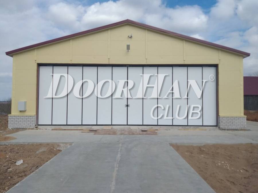 Главное предназначение – перекрытие крупных проемов авиационных ангаров, судостроительных эллингов и иных технологических и складских помещений. Изделия отличаются повышенной степенью герметичности и износостойкости. Они устойчивы к серьезным ветровым нагрузкам, но легки в обслуживании. Предусмотренная поворотная промежуточная колонна позволяет открывать полотнища не на всю ширину, а по разграниченным секциям. У нас вы можете заказать ворота серии HD20/40 любой цветовой гаммы и типоразмера – с высотой/шириной проема в 200-400 см.