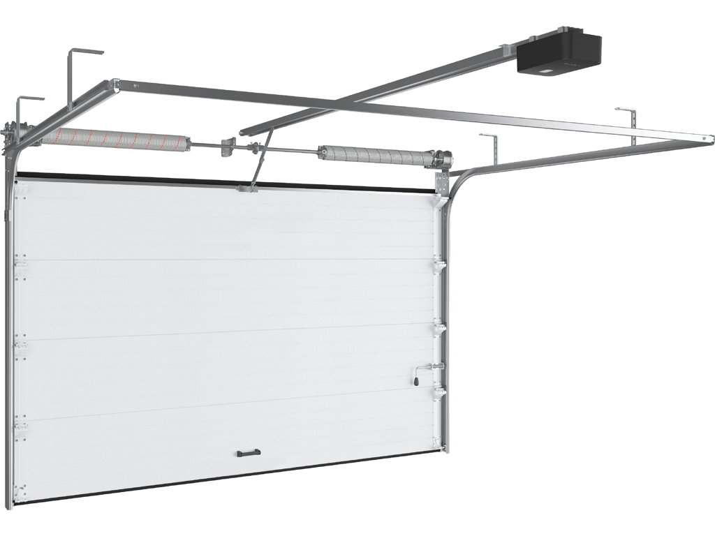 - Система уравновешивания полотна ворот — пружинно-торсионный механизм (устройство защиты от разрыва пружины является опцией)